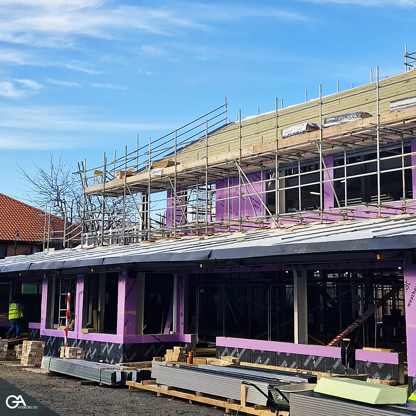 GA Interiors Ltd was appointed to deliver the Steel Framing Systems (SFS) package manufactured by Drywall Steel Sections, including Siniat Weather Defence Board. Our works formed a critical part of the building envelope, supporting both the structural integrity and thermal performance of the school.